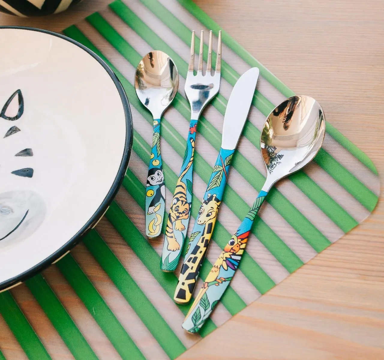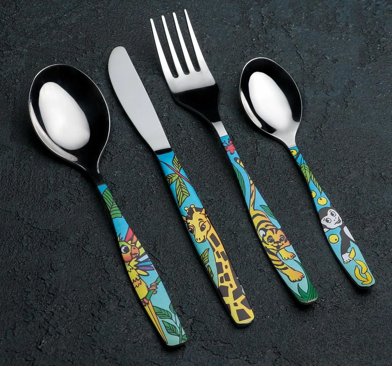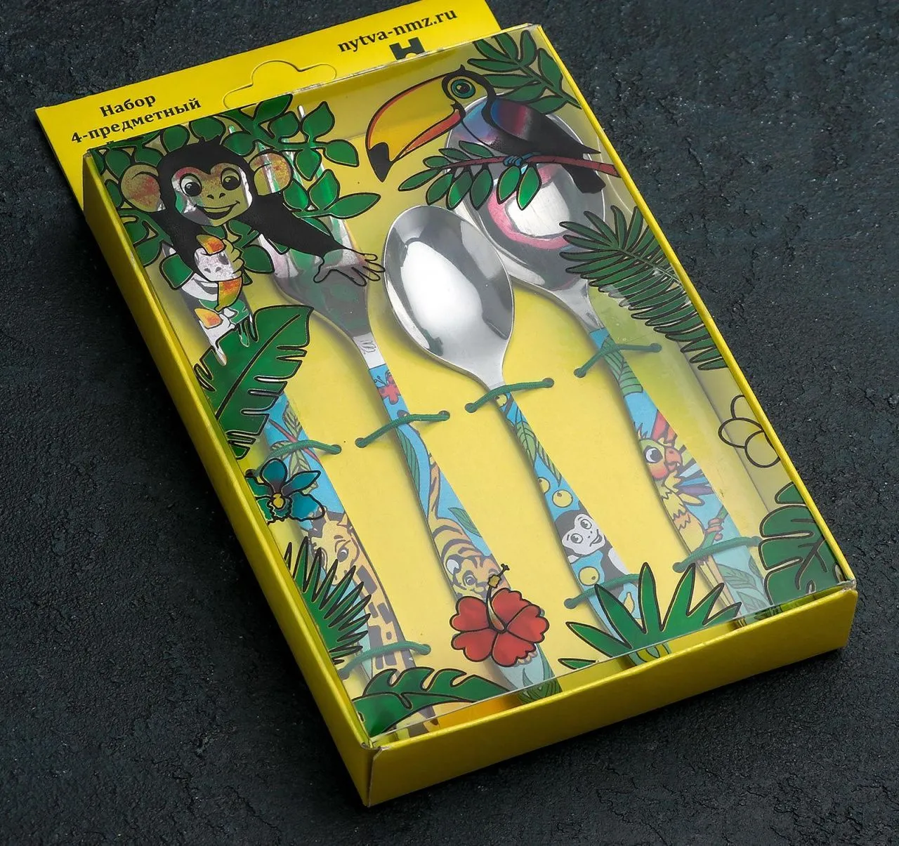 Набор столовых приборов 4-х предметный "Джунгли" (М43) с деколью в картонной коробке с прозрачной крышкой 4154437