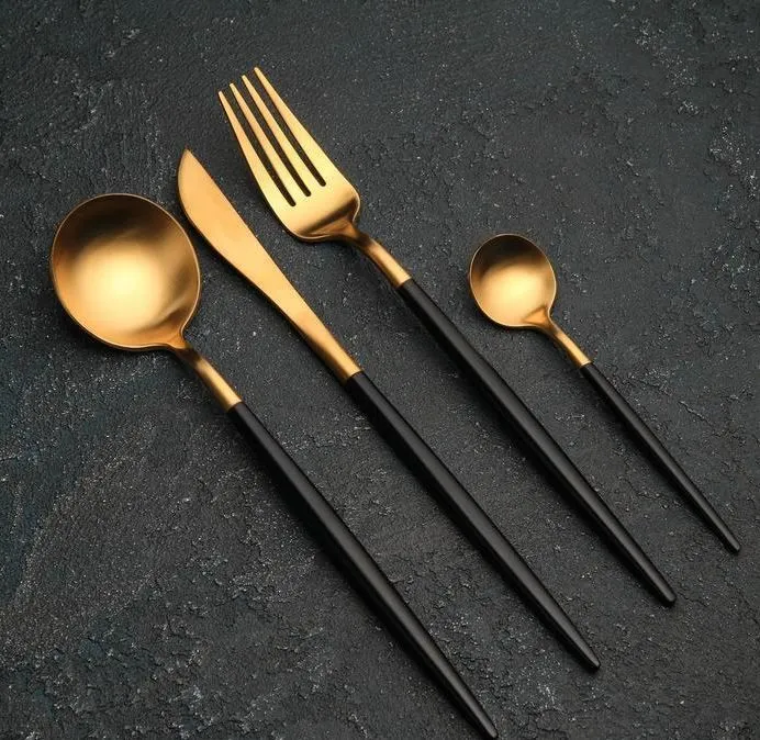 Набор столовых приборов 4 предмета Magistro "Фолк" золото, чёрная ручка 2941973