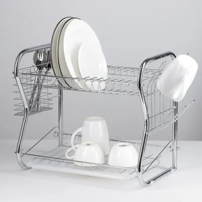 Сушилка для посуды 50*32*12,5см из хромированной стали с поддоном (черный)