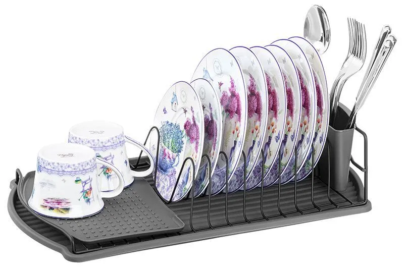 #Сушилка для посуды "Серая" 47,5*26,5*11 см, с поддоном, с держателем для столовых приборов с 3-мя отделениями