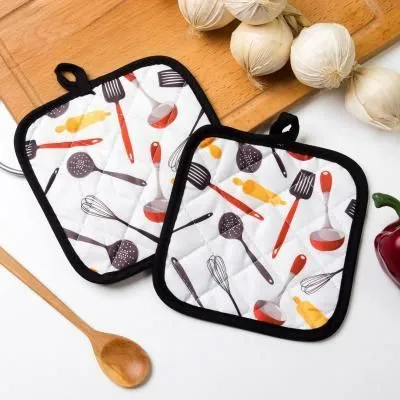 Набор для кухни 2 предмета "Радушная хозяйка" (рукавичка-прихватка, прихватка) (Кокосы сер
