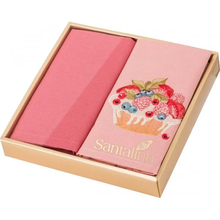 КОМПЛЕКТ САЛФЕТОК 40*40СМ ИЗ 2ШТ "ЯГОДНОЕ ПИРОЖНОЕ" Х/Б 100%, МОЛОЧНЫЙ/РОЗОВЫЙ