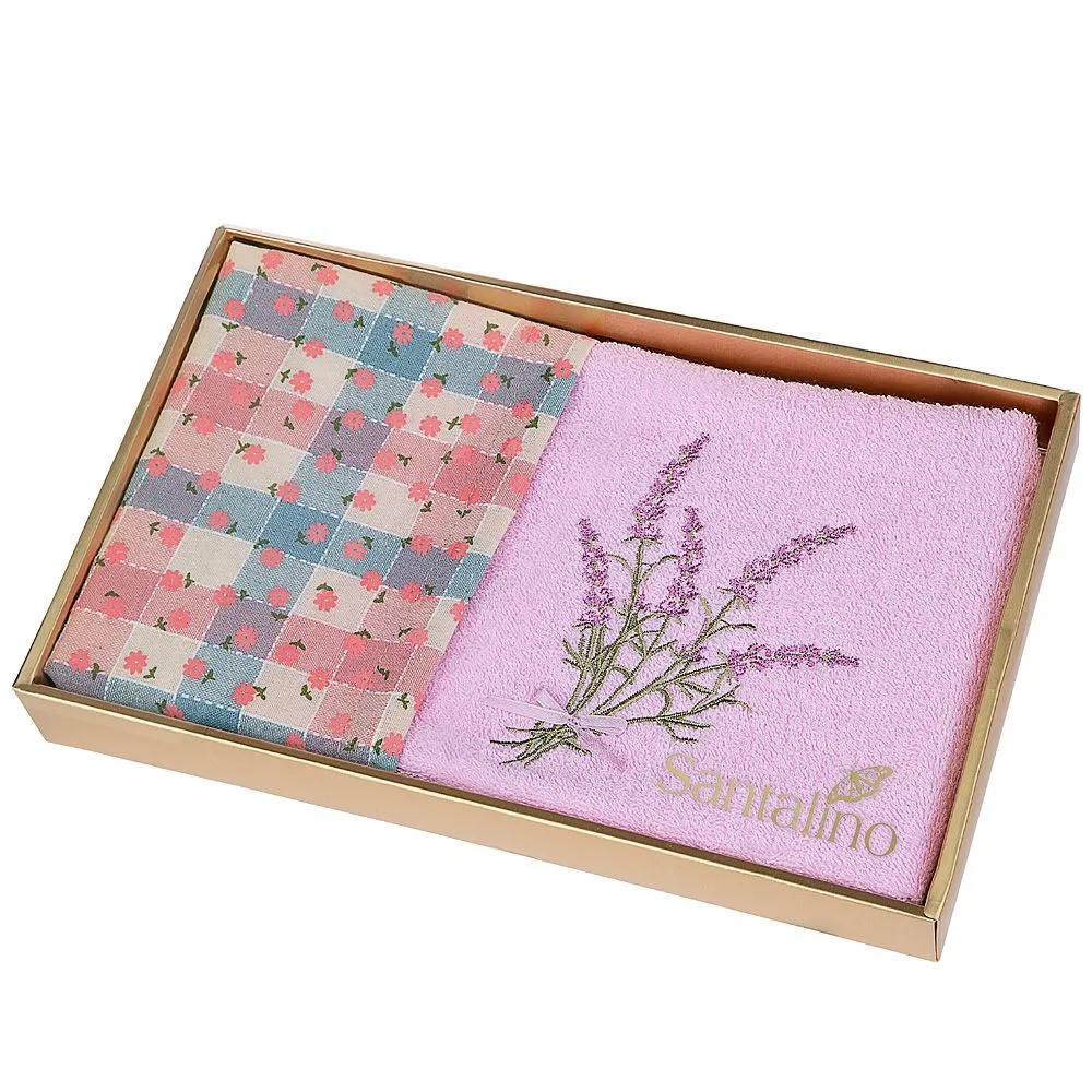 850-453-87 НАБОР ПОЛОТЕНЕЦ ИЗ 2-Х ШТ "ЛАВАНДА",50Х30СМ, МАХРА РОЗ+РОГОЖКА РОЗ. 100% ХЛОПОК