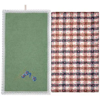 850-453-93 НАБОР ПОЛОТЕНЕЦ ИЗ 2-Х ШТ "ВАСИЛЬКИ",50Х30СМ, МАХРА ЗЕЛ+РОГОЖКА . 100% ХЛОПОК