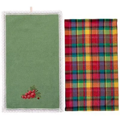 850-453-95 НАБОР ПОЛОТЕНЕЦ ИЗ 2-Х ШТ "СМОРОДИНА",50Х30СМ, МАХРА ЗЕЛ+РОГОЖКА . 100% ХЛОПОК