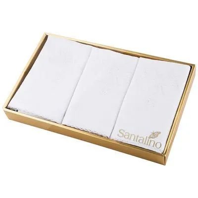 850-517-27 КОМПЛЕКТ САЛФЕТОК ИЗ 3ШТ 40Х40СМ "КАМЕЯ",БЕЛЫЙ, 100% ХЛОПОК ЖАККАРД,КРУЖЕВО.