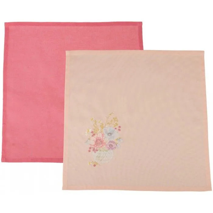 КОМПЛЕКТ САЛФЕТОК 40*40СМ ИЗ 2ШТ "БУКЕТИК" Х/Б 100%, МОЛОЧНЫЙ/РОЗОВЫЙ