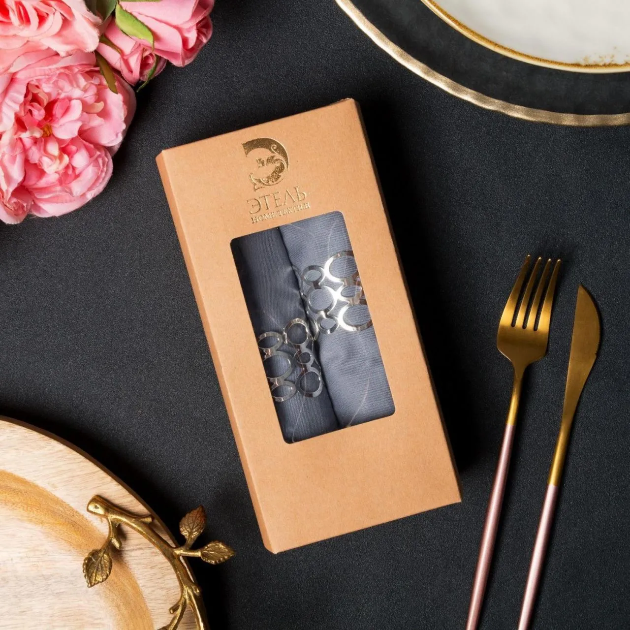 Набор салфеток с кольцами "Этель" Капелька 40*40-2 шт., цв.свето-серый,100% хл 6384897