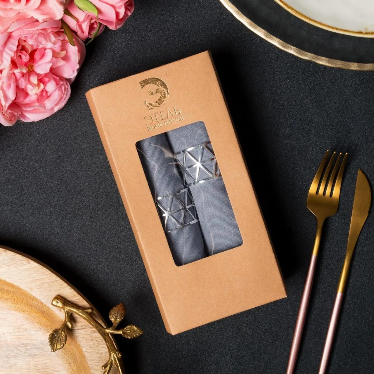 Набор салфеток с кольцами "Этель" Треугольники 40*40-2шт,цв. светло-серый/серебро, 100% хл 6384909