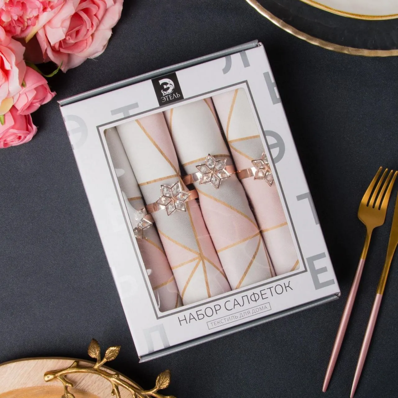 Набор салфеток с декорат. кольцами "Геометрия" 46х46см - 4 шт, 100% хл, саржа 190гр/м2 6534332