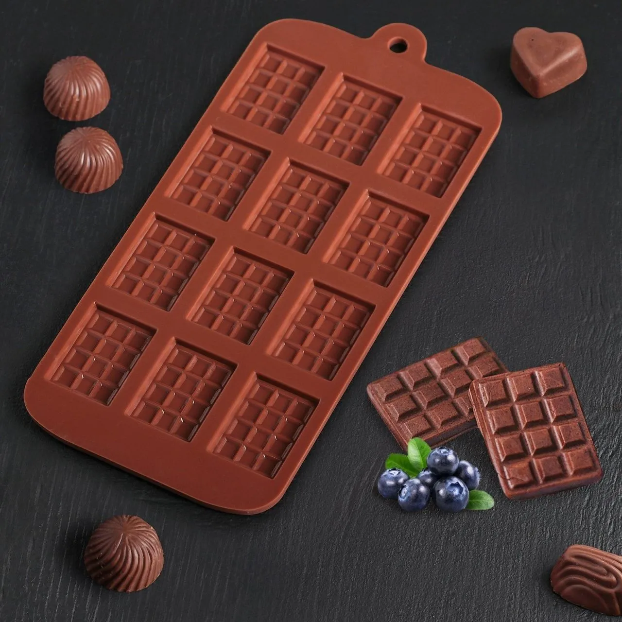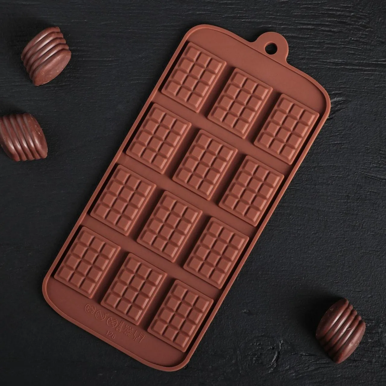 Форма для льда и шоколада 12 ячеек 21х11 см (2,7х3,9 см) "Плитка" цвет шоколадный 114001