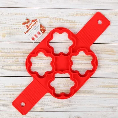 Форма для яичницы и блинов 4 ячейки "Сердца" 35х16,5х1,5 см, цвета МИКС 2582014