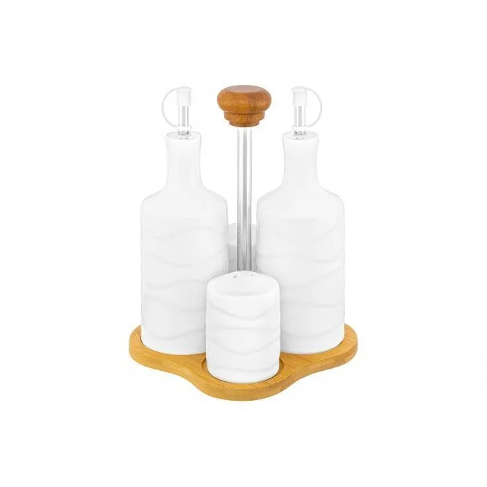 Набор для специй и масла/уксуса/соевого соуса 4 предмета "Айсберг волны" 18*18*22 см, соусник - 6,5*6,5*21 см, 340 мл - каждый, солонка и перечница 5*