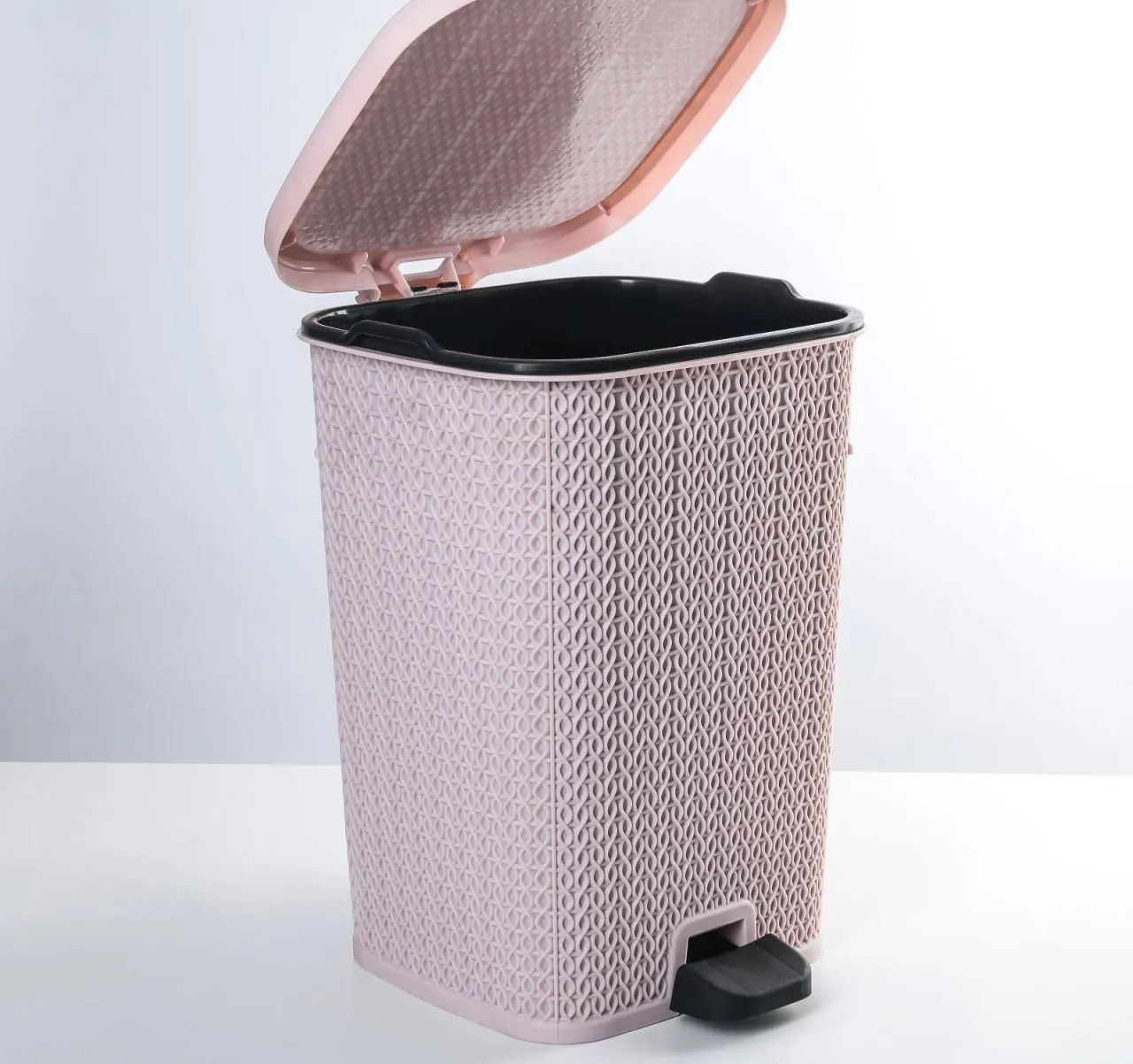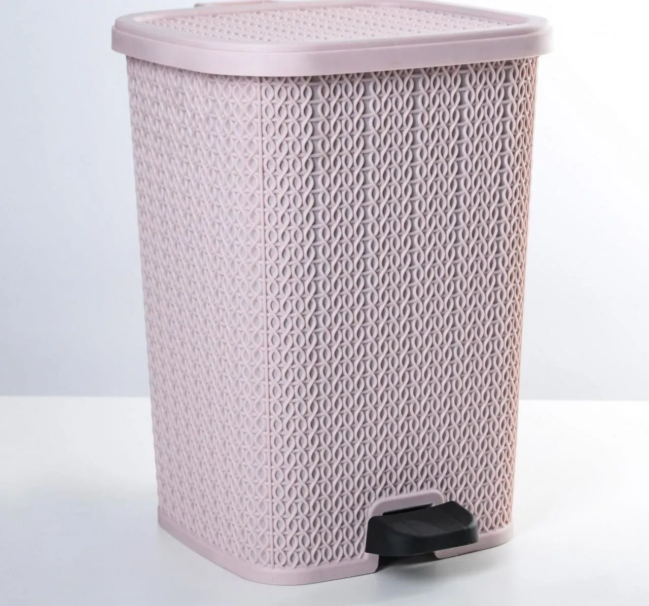 Мусорное ведро с педалью 12 л вязаный узор пепельно-розовый