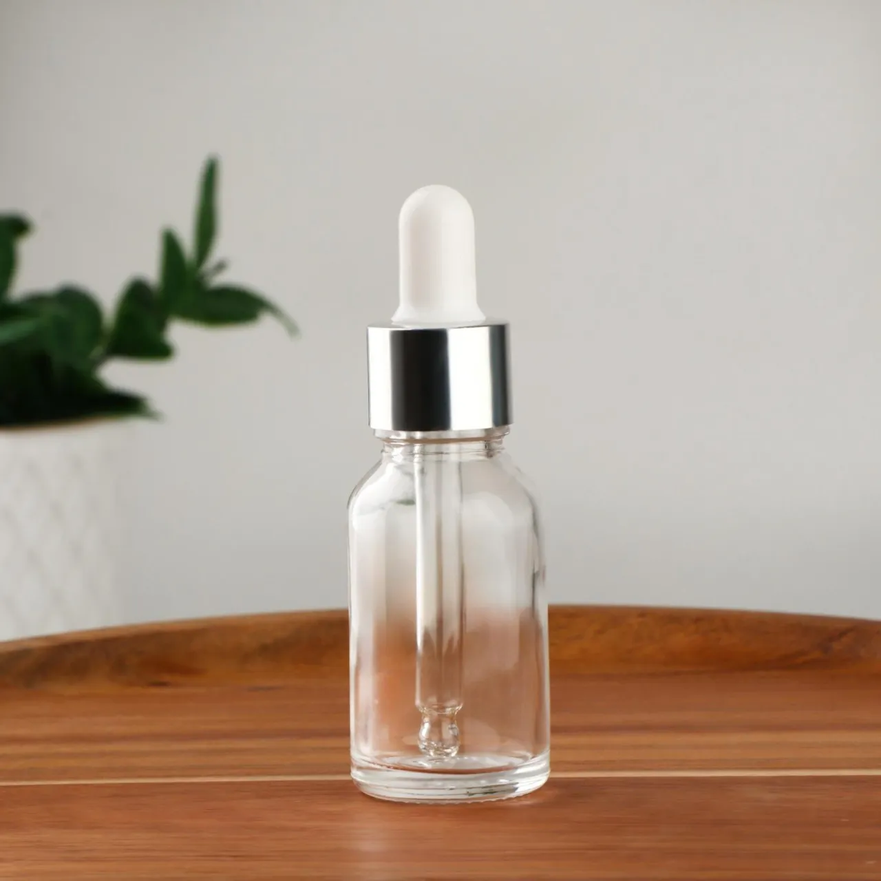 #Бутылочка д/хранения с пипеткой 15мл d3*9см стекло серебр/бел накл ОТ 10500176