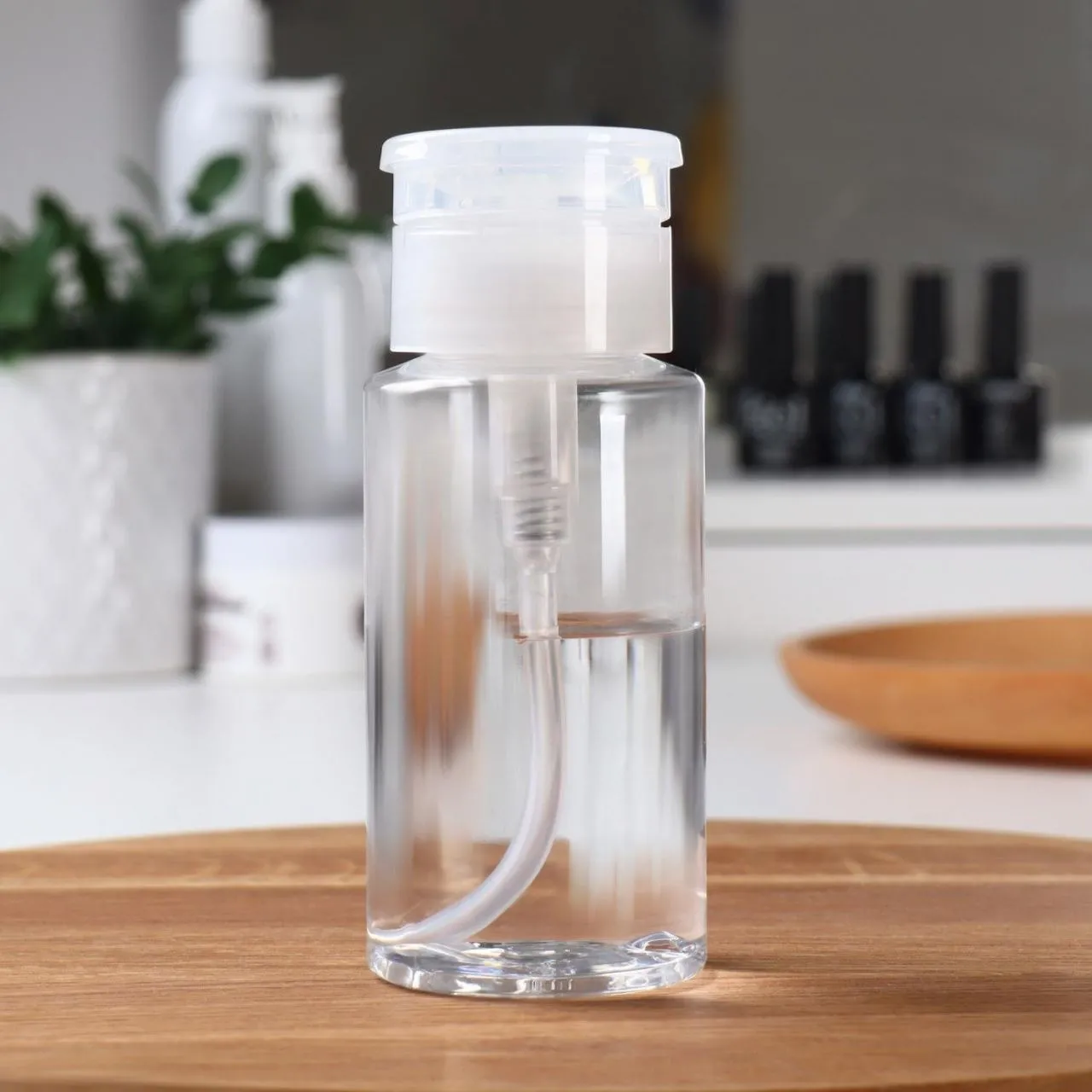 #Баночка с дозатором для жидкостей 150мл 12*4,7*4,7 прозрач/бел пакет QF 6936231