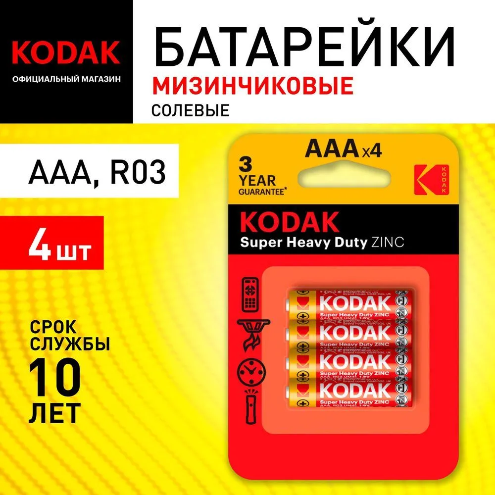 03 Kodak R03-4BL SUPER HEAVY DUTY Zinc батарейка 887930953329