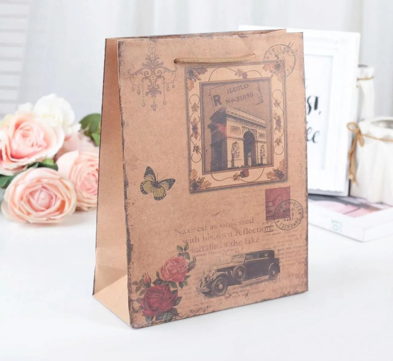 Пакет крафт "Париж", 20 х 8 х 25 см