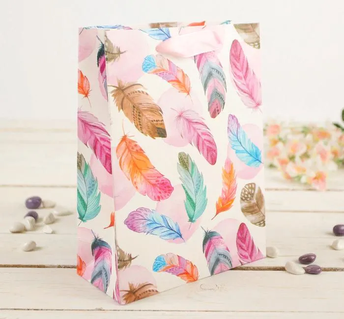 Пакет подарочный "Пёрышки", розовый, 30 х 12 х 42 см
