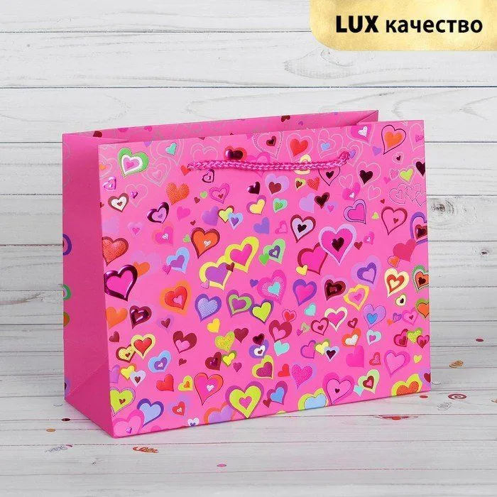 Пакет подарочный "Разноцветные сердечки", люкс, 24,5 х 9 х 19 см