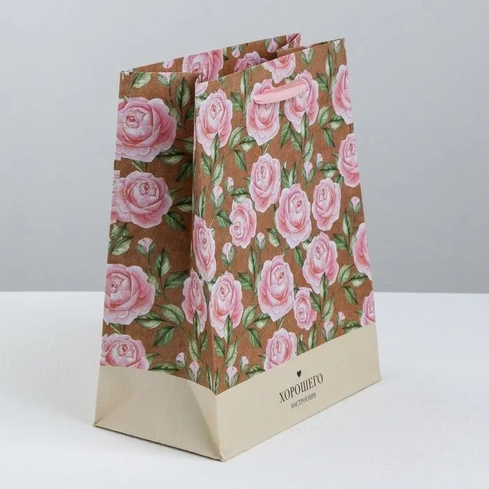 Пакет крафтовый вертикальный «Цветочного настроения», ML 23 × 27 × 11.5 см 3680724
