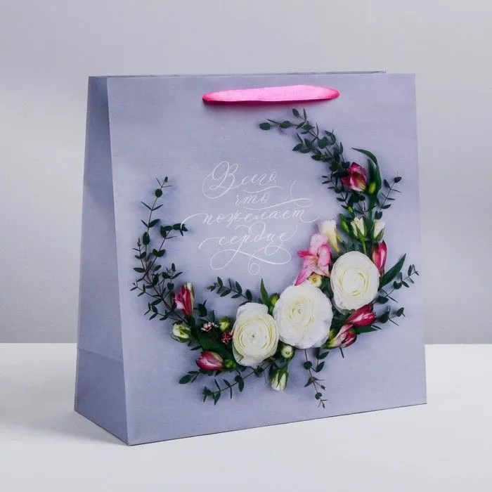 Пакет крафтовый квадратный «Нежные чувства», 30 × 30 × 12 см 3681030