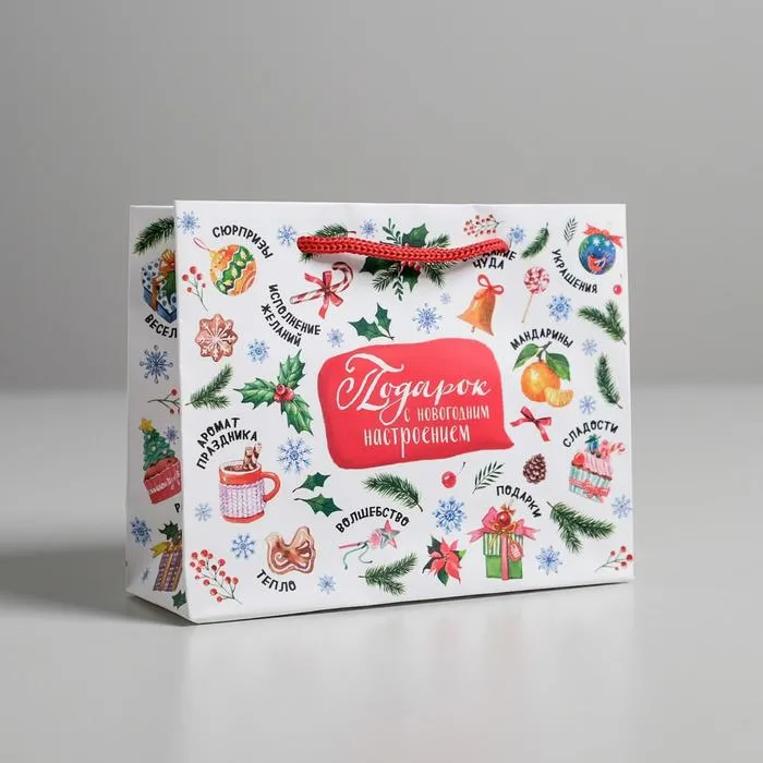 Пакет ламинированный горизонтальный «Подарок с новогодним настроением», S 5.5 × 15 × 12 см 3468989