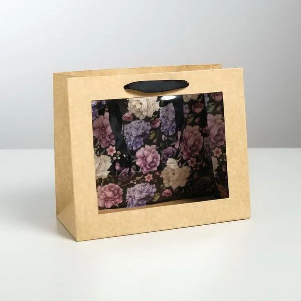 Пакет крафтовый с пвс окном Flowers, 24 х 20 х 11см 4766891