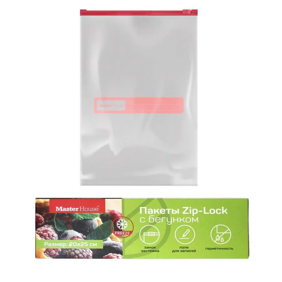 #Пакеты для заморозки с защелкой Zip-Lock/Бегунком 20*25см (2л) 10шт/уп 75167 Master House