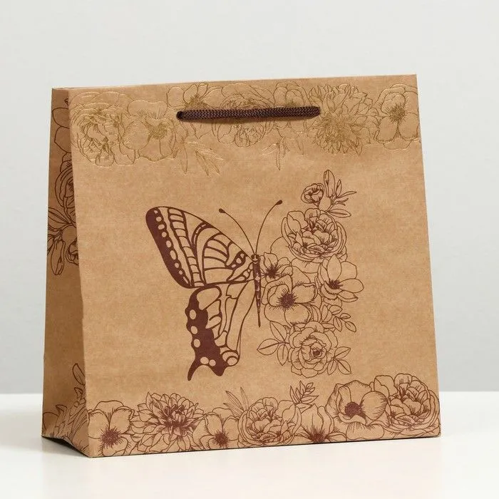 Пакет подарочный "Цветочная бабочка", крафт, 22.5 x 23 x 10 см 7601621