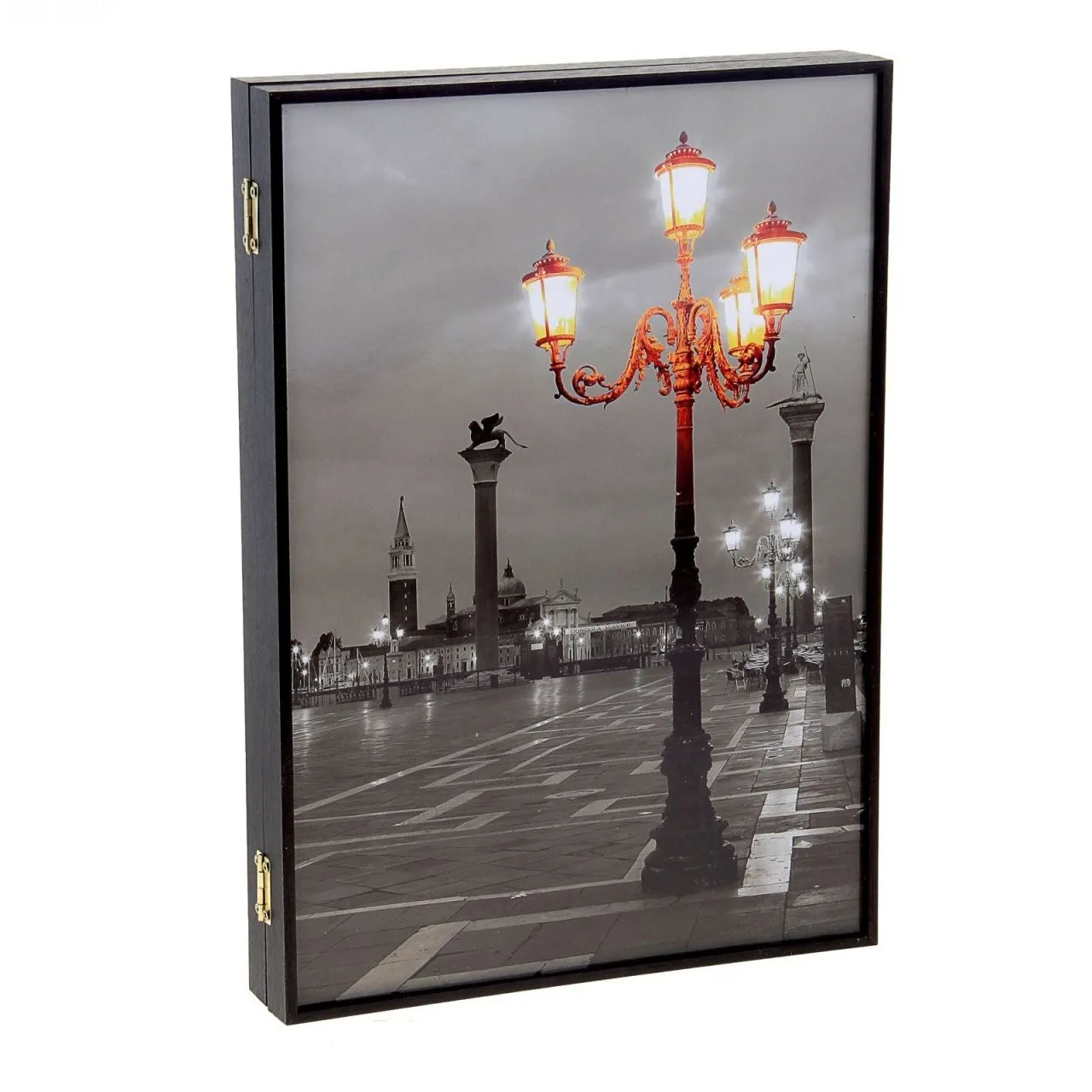Ключница дерево "Домик. Home" цветочки на голубом 30х21х5,3 см 3004672