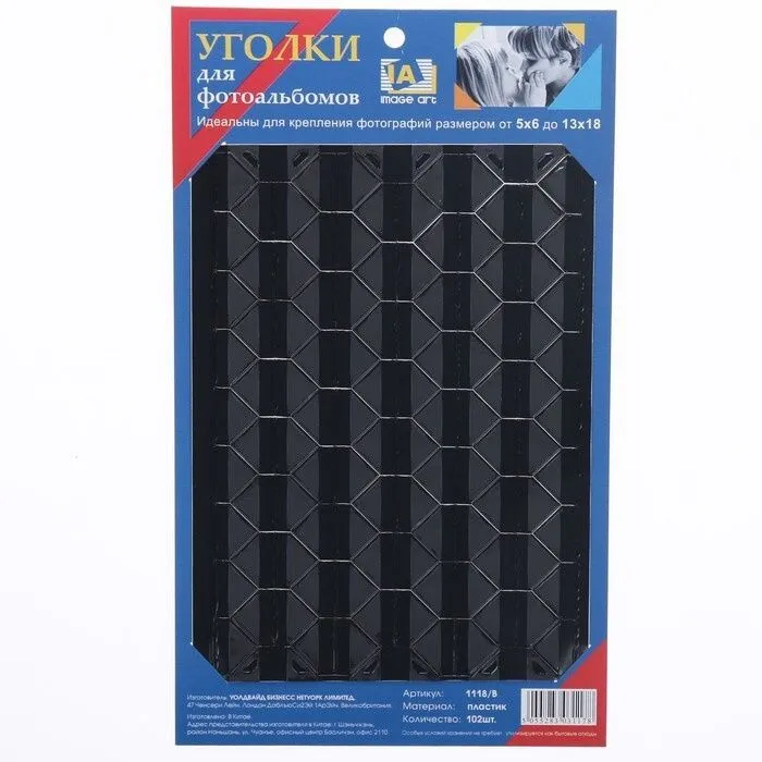 Уголки для фотоальбома Image Art, чёрные, для фото размерами: от 5x6 до 13x18 см