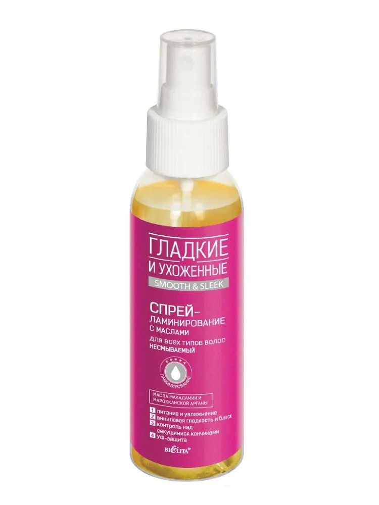 Спрей-ламинирование для волос BIELITA Гладкие и Ухоженные с маслами, несмываемый, 100 мл 1904776