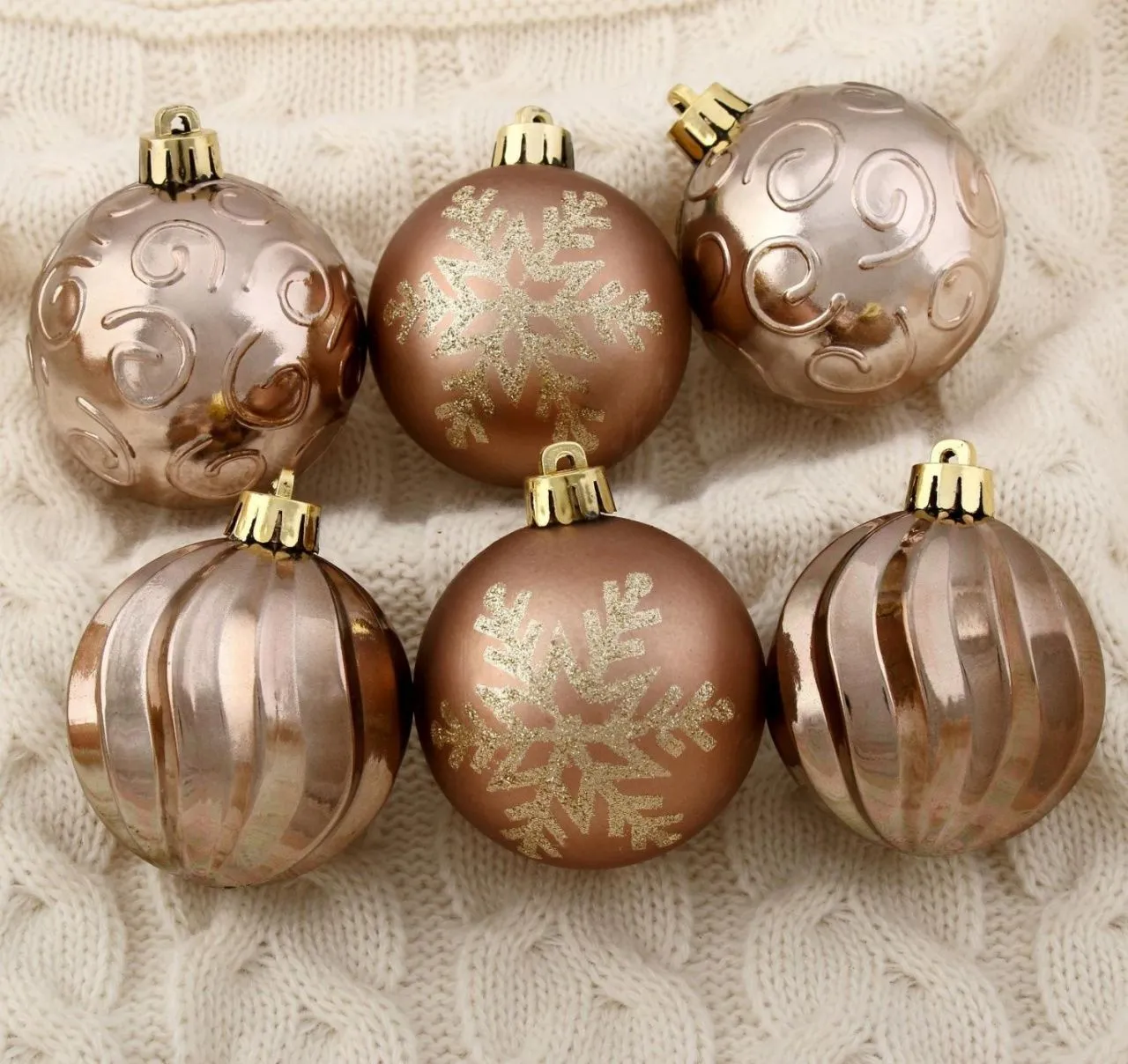 Набор шаров пластик d-6 см, 9 шт "Марокко снежинки" коричневый 4196382