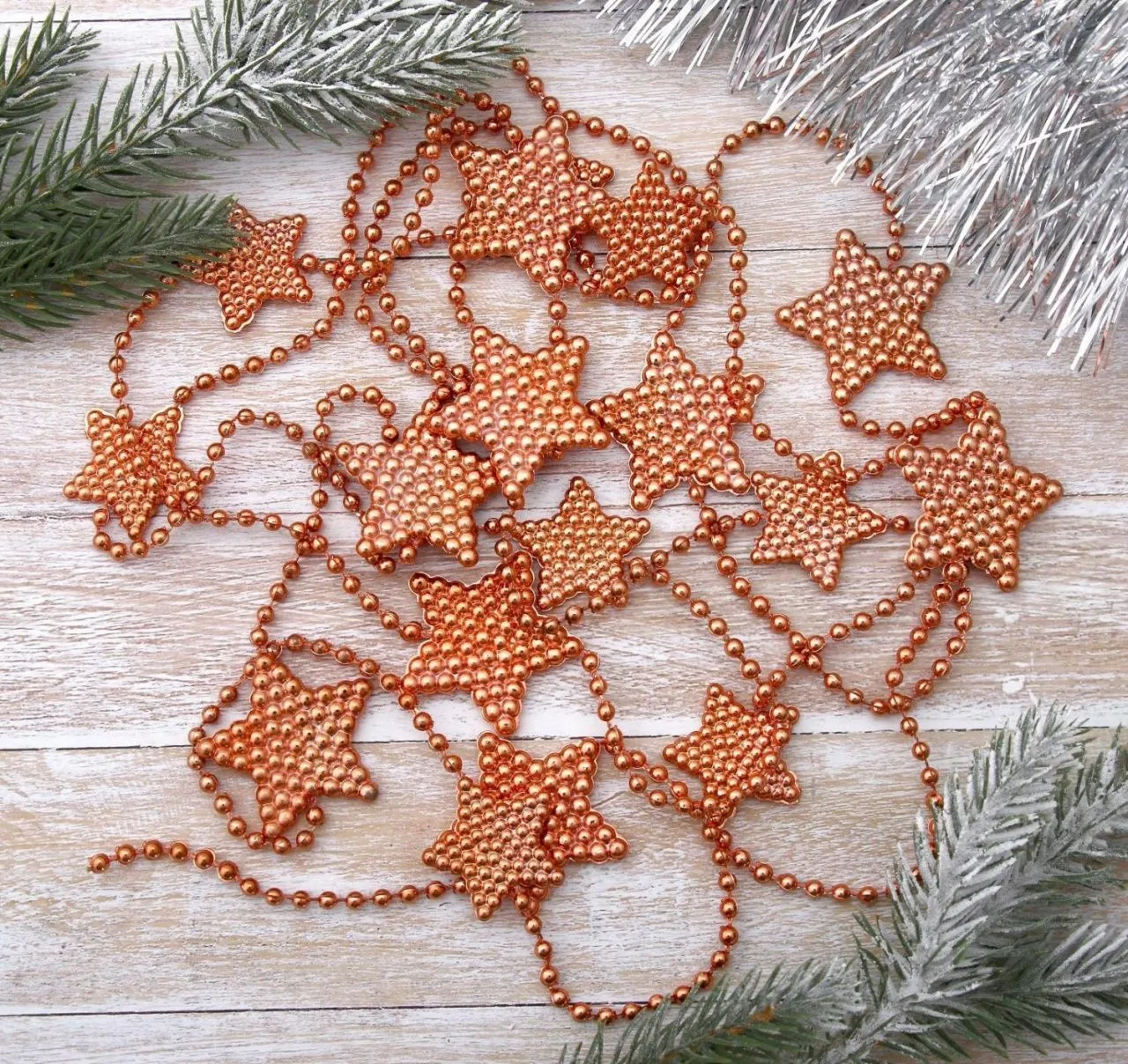 Бусы на ёлку 2,7 м "Звёзды объёмные" оранжевый 4196422