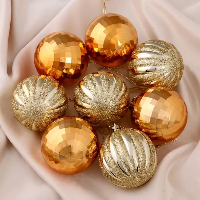 Набор шаров пластик d-6 см, 8 шт "Диско тыковки" оранжево-золотой 4941952