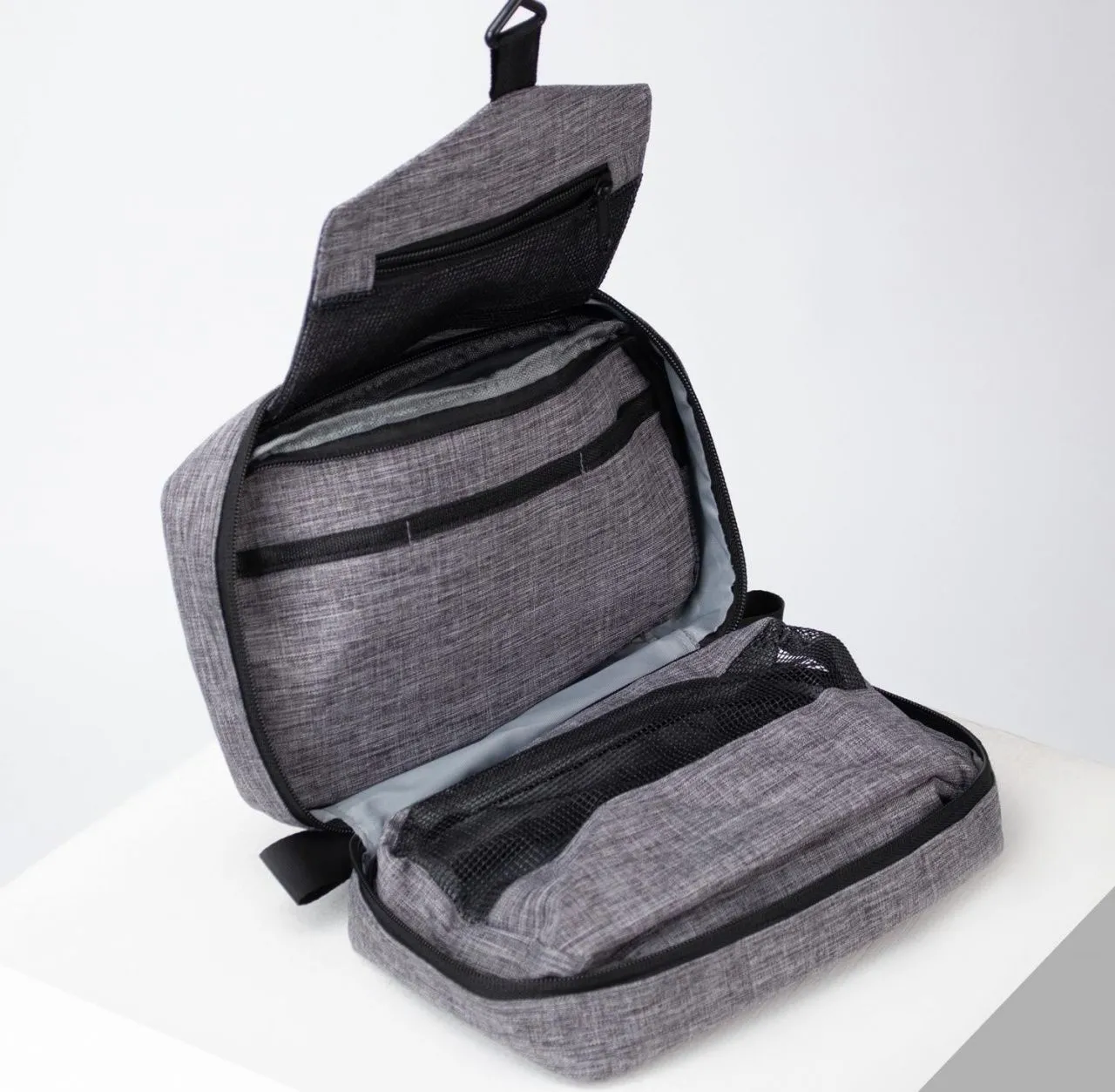 Косметичка дорожная Круиз 24,5*7,5*13, 2 отд на молниях с крючком, серый 4613078