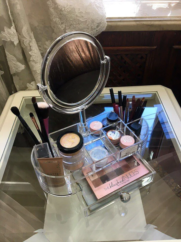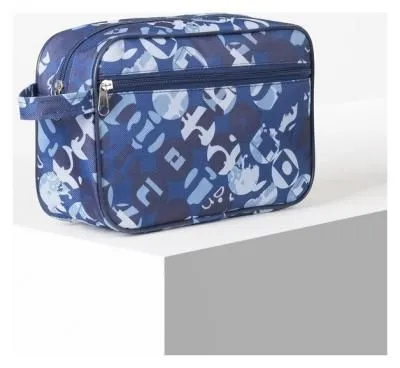 Косметичка-ассорти "Белый цветок", 1 отдел, с ручкой, голубая