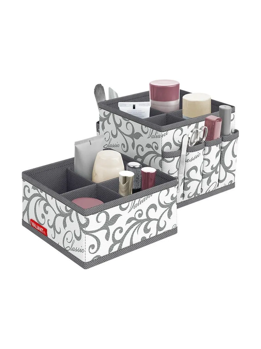 VAL CG-S4S4T Набор органайзеров-трансформеров для косметики и аксессуаров, 2 шт., 15*15*12 см и 15*15*7 см, CLASSIC GREY