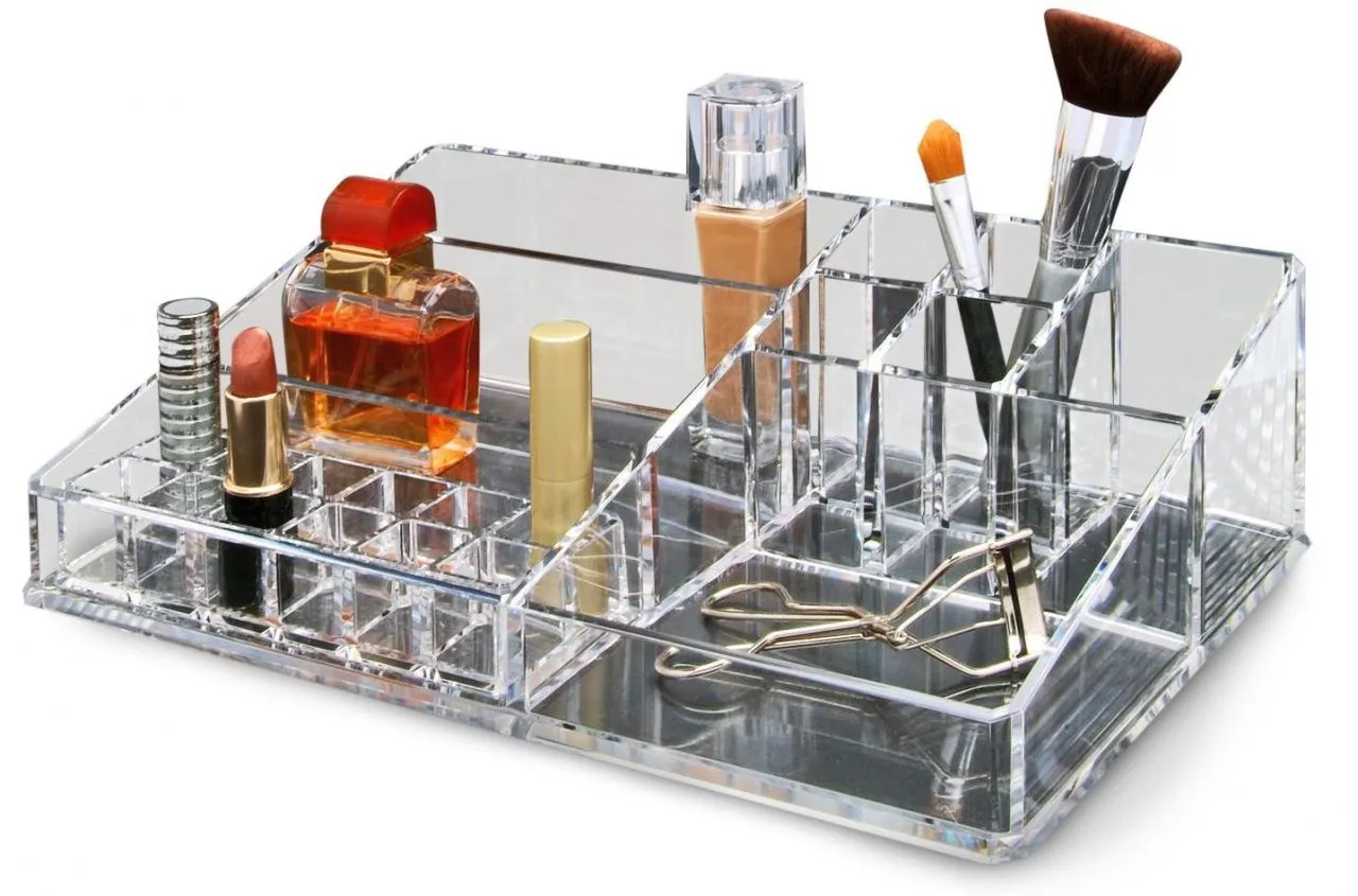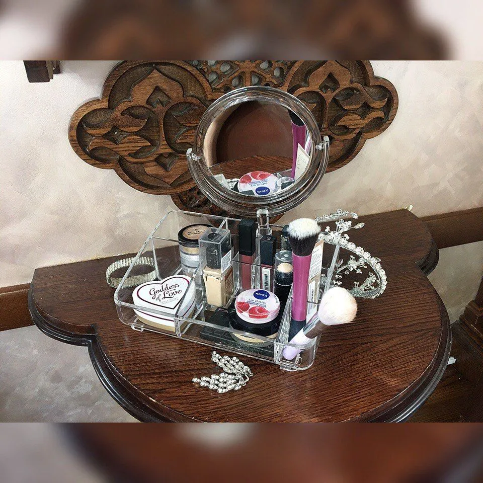 Акриловый органайзер для косметики на метал. каркасе с 4 выдвиж. ящичками и съёмным отсеком на 8 ячеек 1054D