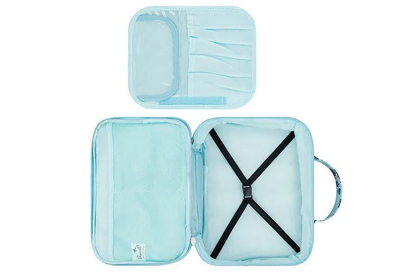 Косметичка дорожная "Морские обитатели" 24,5*18*8 см, голубая, с 2-мя кармашками, с вкладышем с 5-ю отделениями