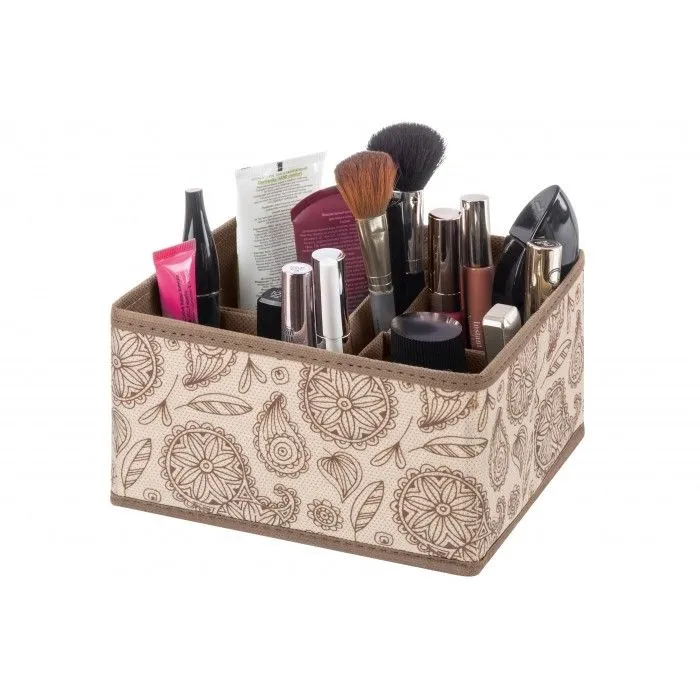 Органайзер для косметики/мелочей "Пейсли бежево-коричневый" 17,5*15,5*10,5 см, 5 складных секций или 8 внутренних карманов с держателями для туши и ка
