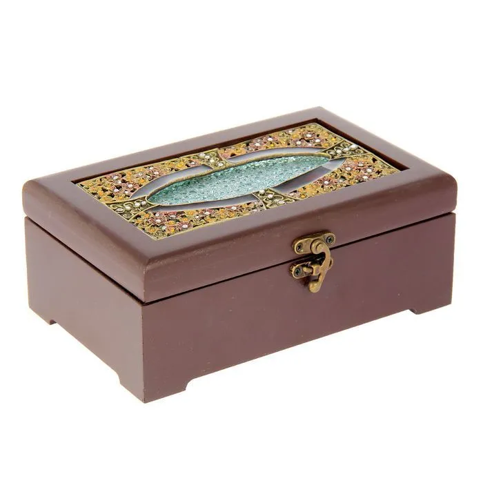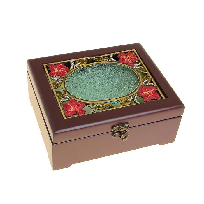 Шкатулка стекло с металлическим каркасом "Мерлин" светлая 16х20х6 см 10524364