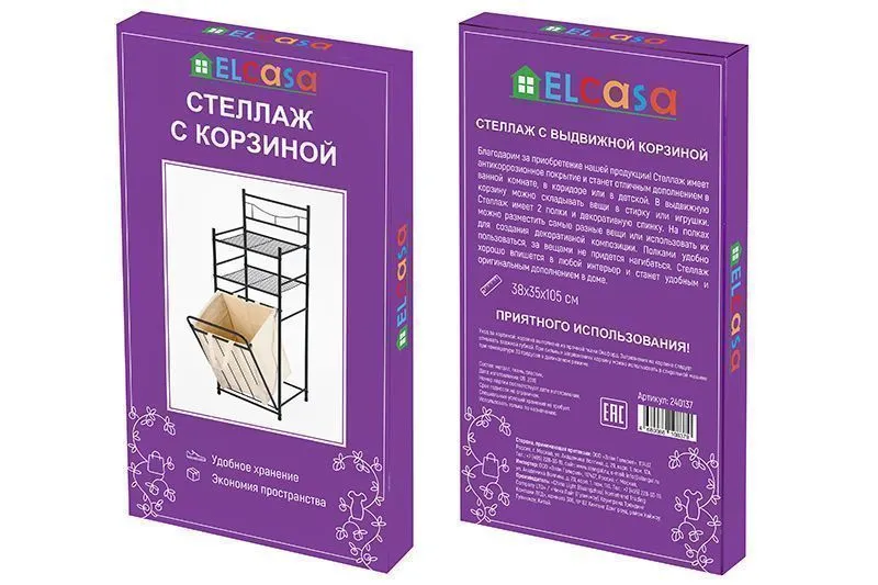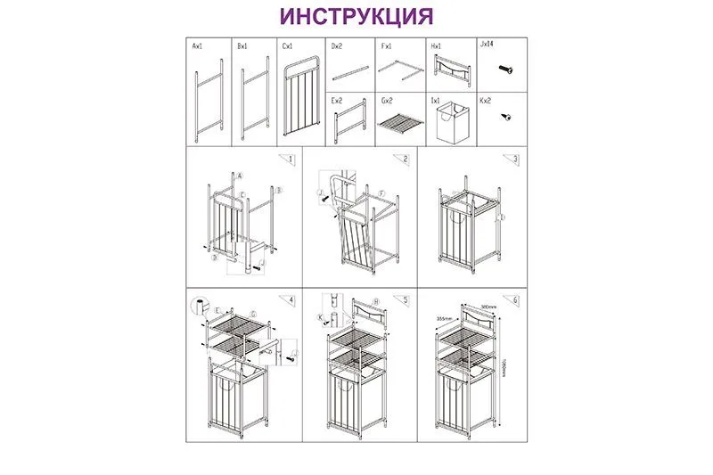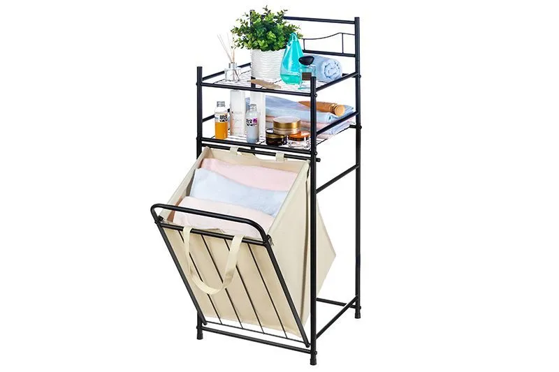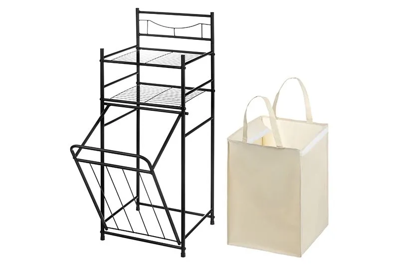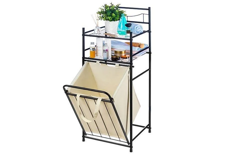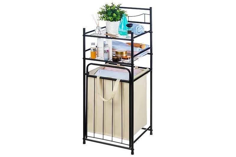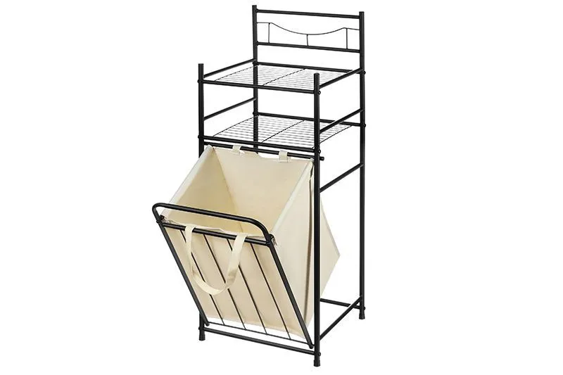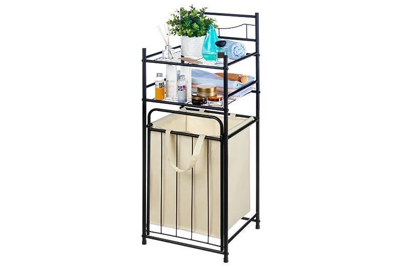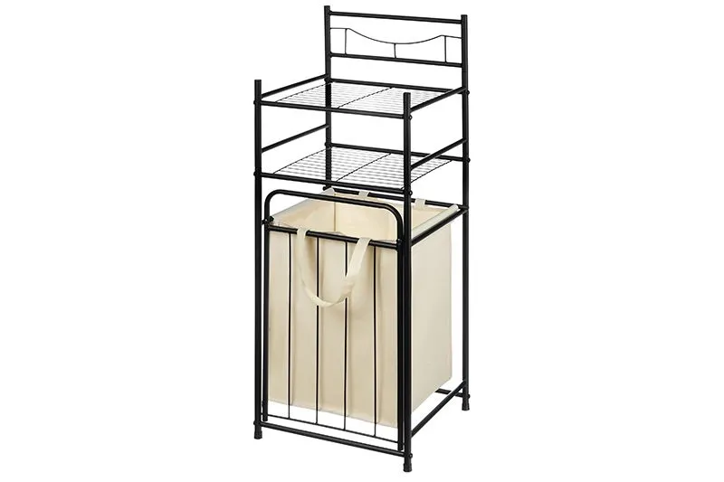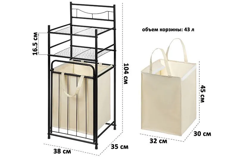 Стеллаж "Черный" 38*35*104 см с 2-мя полками и корзиной для белья, расст-е между полками 16,5 см, объём корзины для белья 43 л 32*30*45 см