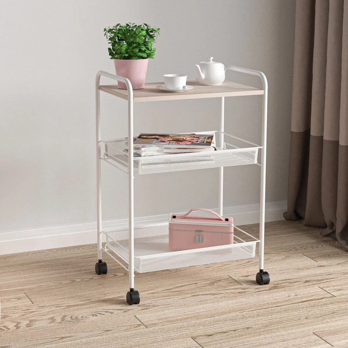 Этажерка "Ладья 33КС" со столиком под дерево (LADYA 33KC storage cart, wood table) (Белый)