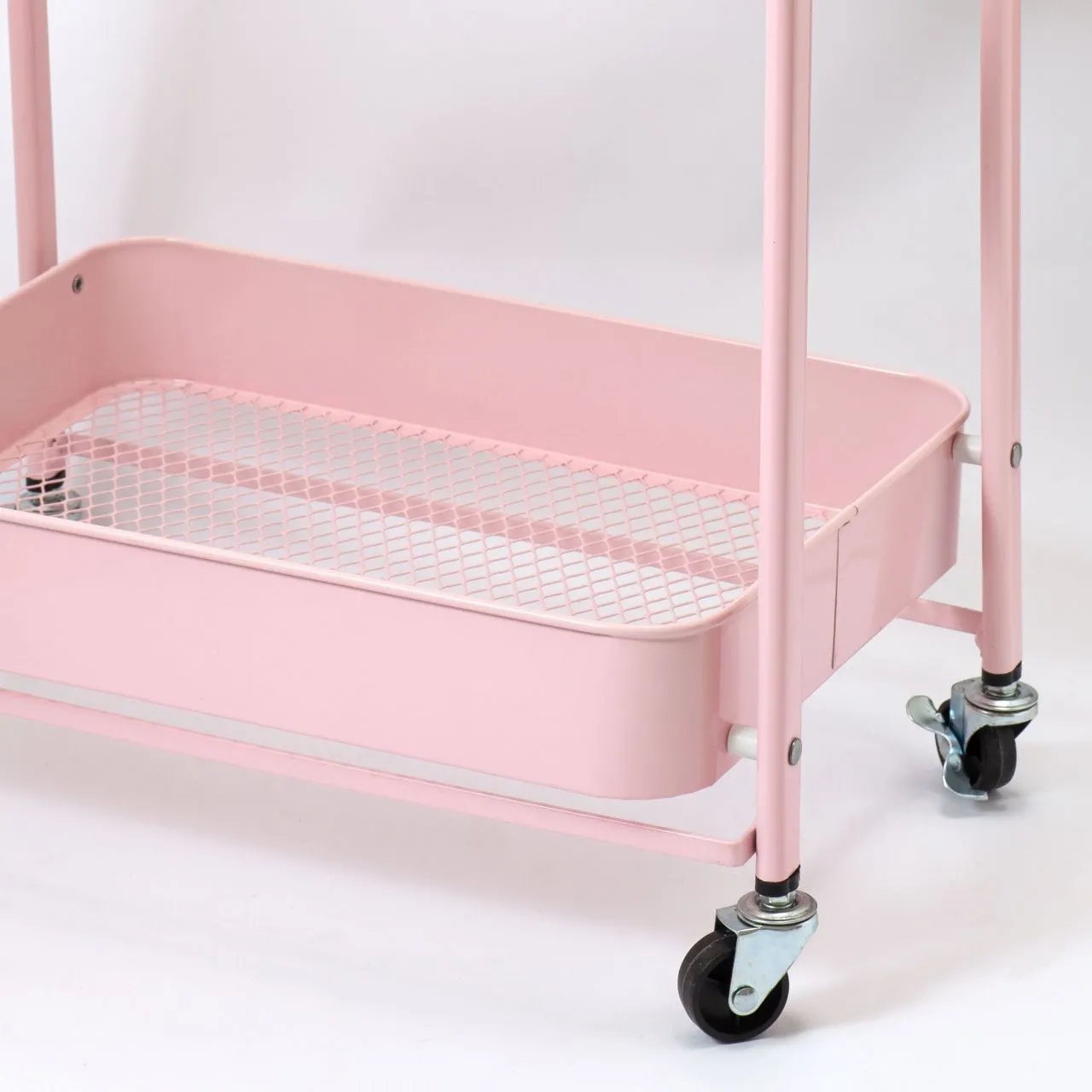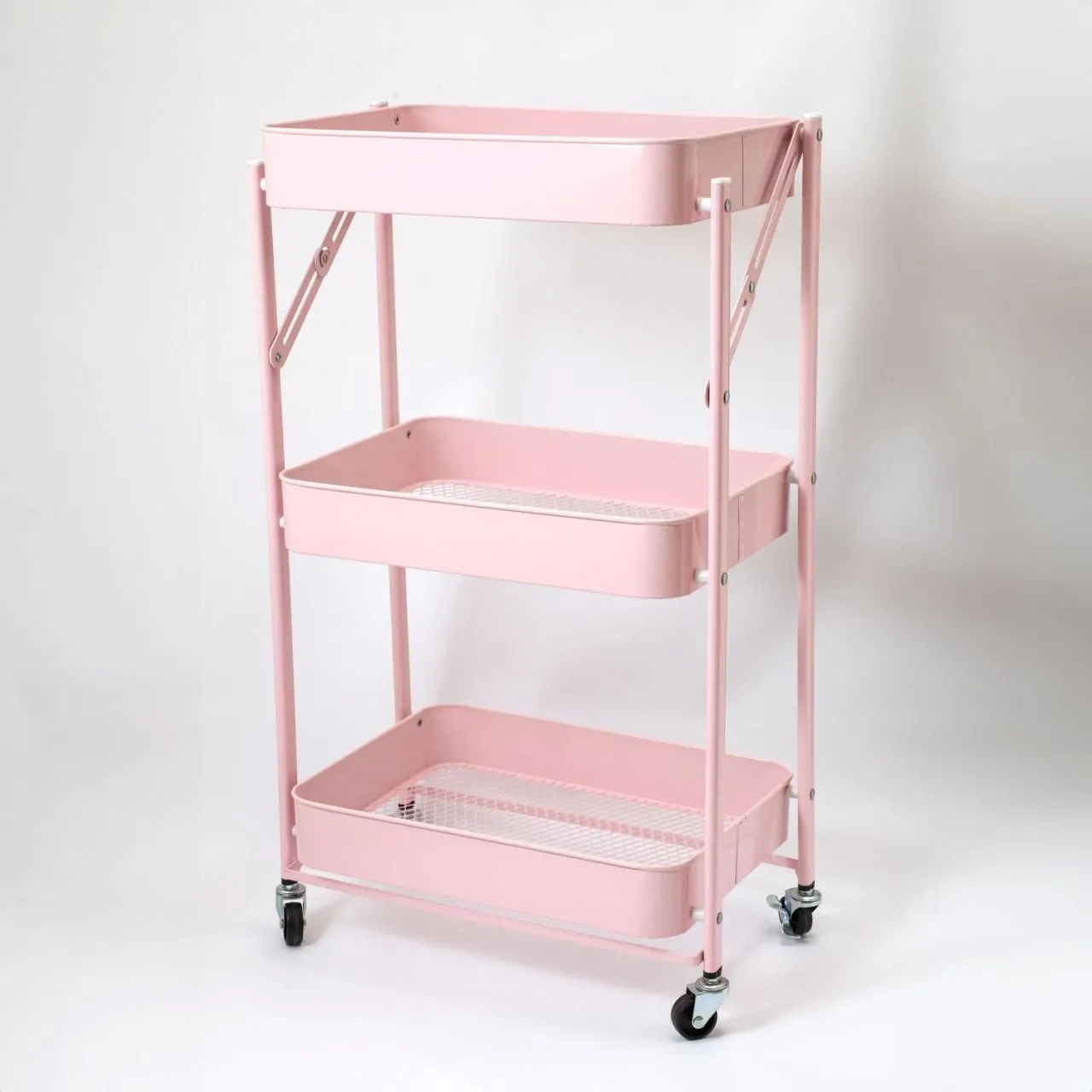 Стеллаж складной 3-х этажный, на колесиках метал, цвет розовый 16365-31
