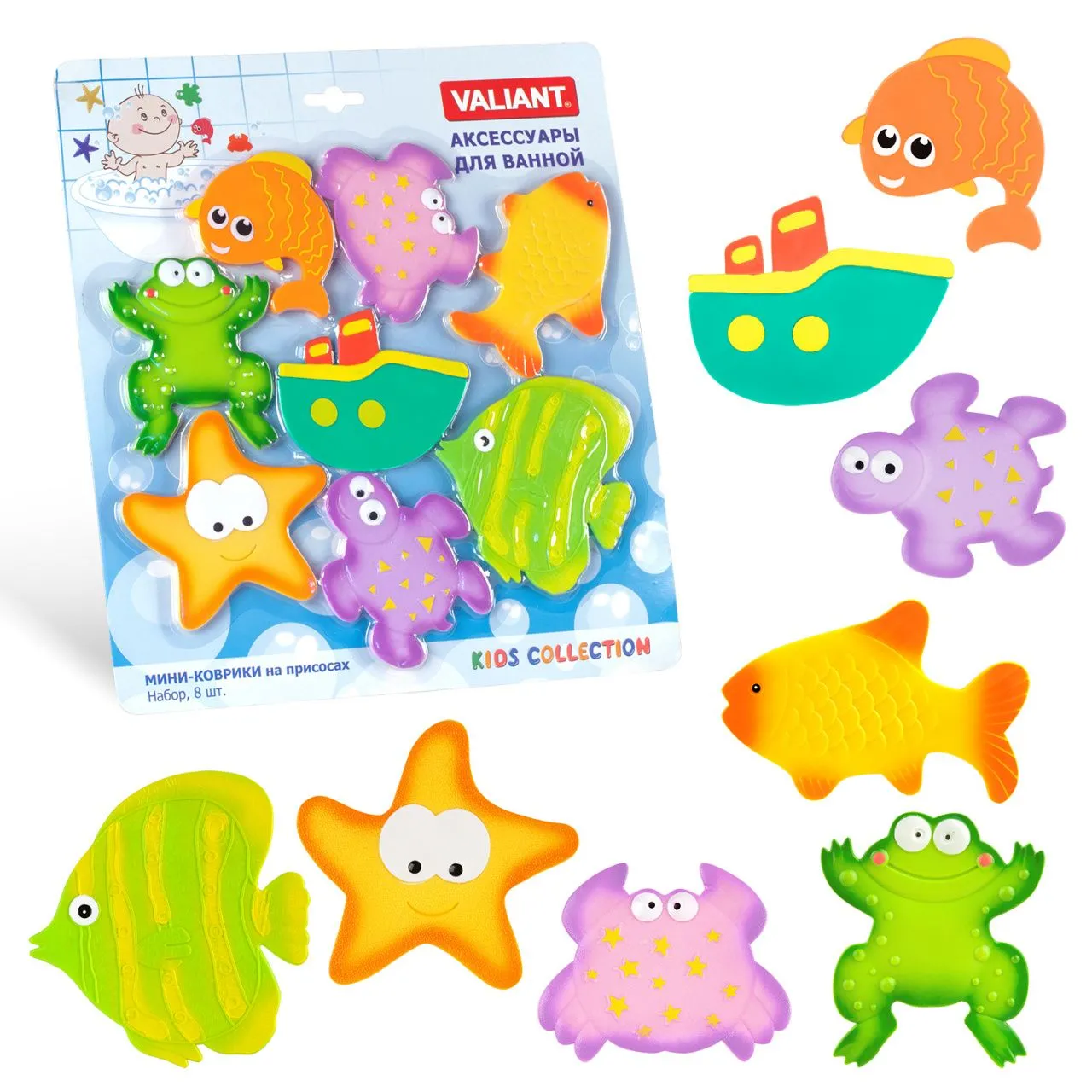 VAL 1627O Мини коврик для ванной комнаты МОРСКАЯ ЗВЕЗДА (на присосах), набор 6 шт.