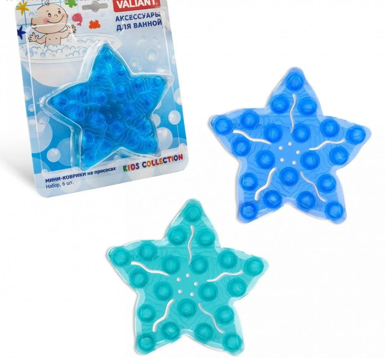 VAL 163B Мини коврик для ванной комнаты МОРСКАЯ ЗВЕЗДА (на присосах), набор 6 шт., синий