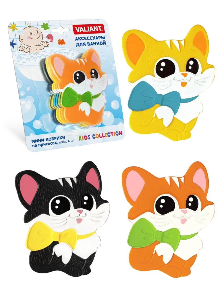 VAL MIX4S5 Набор мини-ковриков для ванной комнаты ПОДВОДНЫЙ МИР (на присосах), 4 шт. МИКС