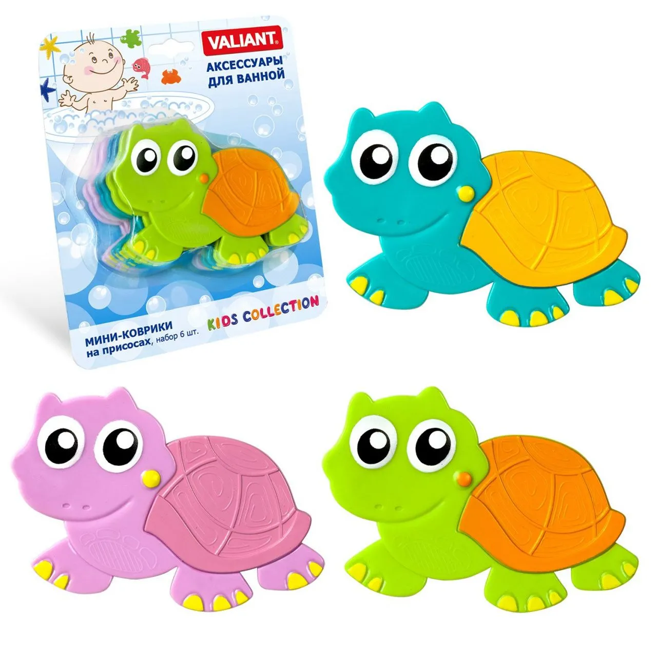 VAL K6-3883 Мини-коврик для ванной комнаты ЧЕРЕПАШОНОК (на присосах), набор 6 шт.
